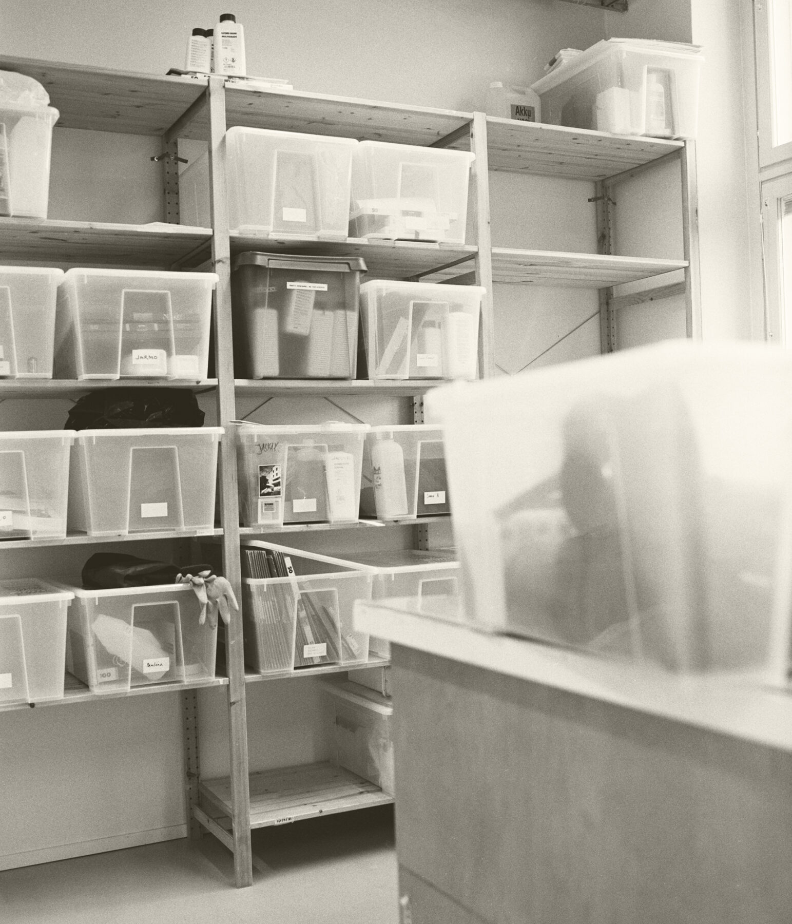 Mörk is a fully equipped, professional black and white darkroom built and maintained by the association located in The Finnish Artists' Studio Foundation's Vallila Studio Centre in Helsinki.